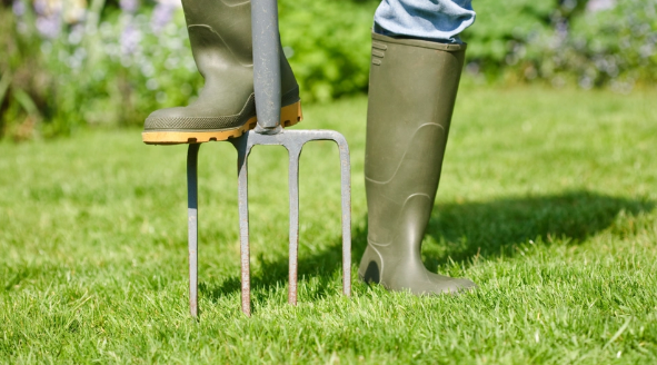Etter måneder med fester, selskaper, barnelek og grilling på plenen, kan jorden bli komprimert. Det kan forhindre at gressplenen får det vann og næring den har bruk for. Derfor skal du i gang med en hagegrep. Du lufter jorden ved å stikke grepen i jorden i plenen og vrikke den litt frem og tilbake så det kommer hull i jorden. Hullene sikrer at vann og næring kommer helt ned til gressrøttene.