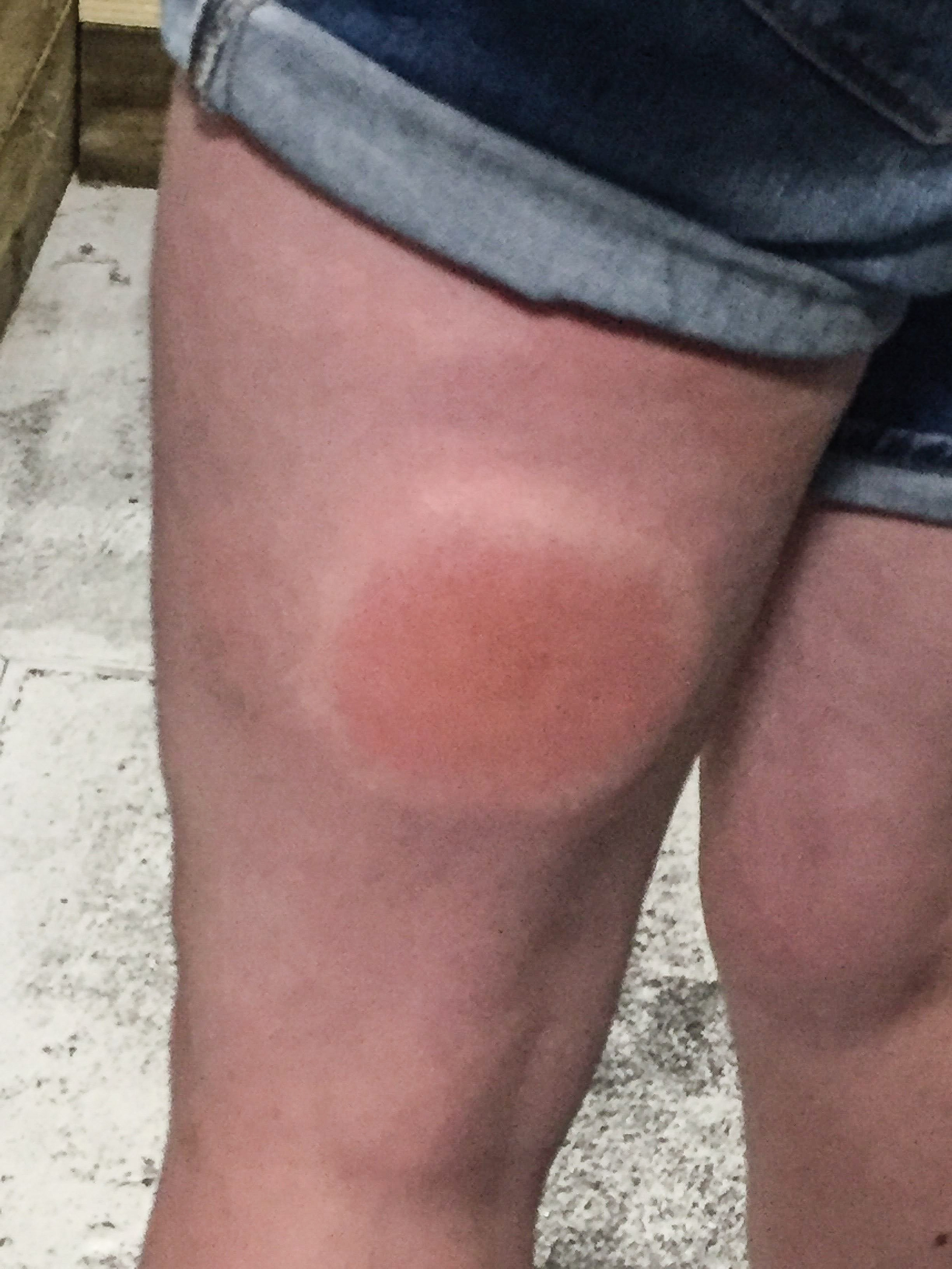 Under utendørstrening merket 25-årige Alex Butterfield plutselig et lite stikk i låret. Èn time senere hadde låret hennes svulmet opp til dobbel størrelse.