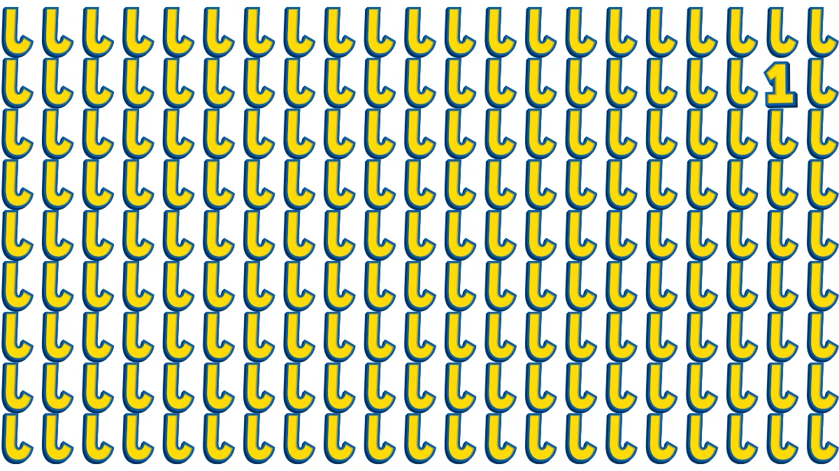 Test øynene dine og skjerp konsentrasjonen med denne visuelle utfordringen! Kan du oppdage tallet 1 som er skjult blant en mengde speilvendte J-er – på bare fem sekunder?