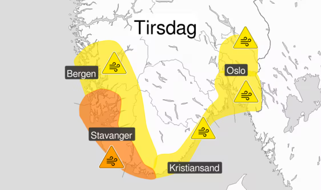 Verre blir det på Sør-Vestlandet. Rogaland er det første til å merke vinden som nå har fått oransje farevarsling.