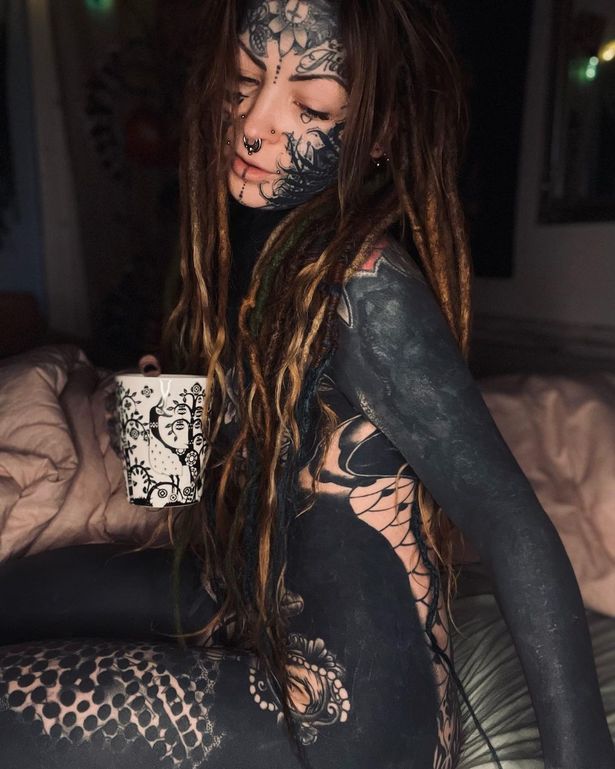 Aleksandra Jasmin, som selv er tatovør, har fått dekket en stor del av kroppen med tatoveringer. Nå viser hun hvordan hun ser ut under klærne.