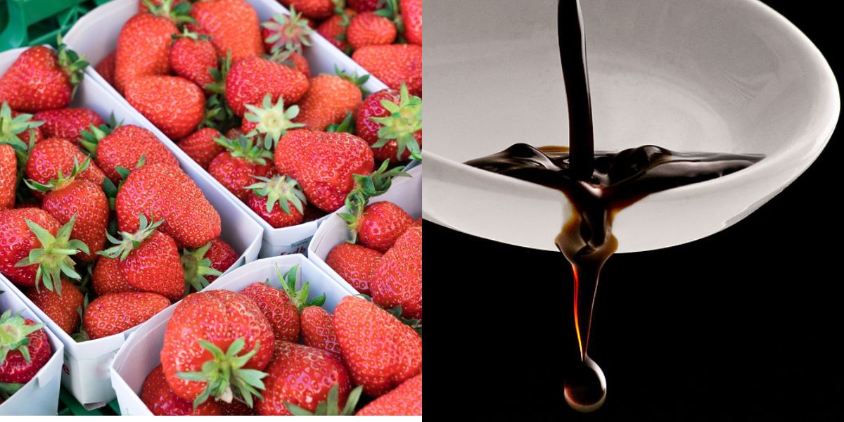 Den syrlige balsamicoen gir jordbærene en ekstra dimensjon av smak.
