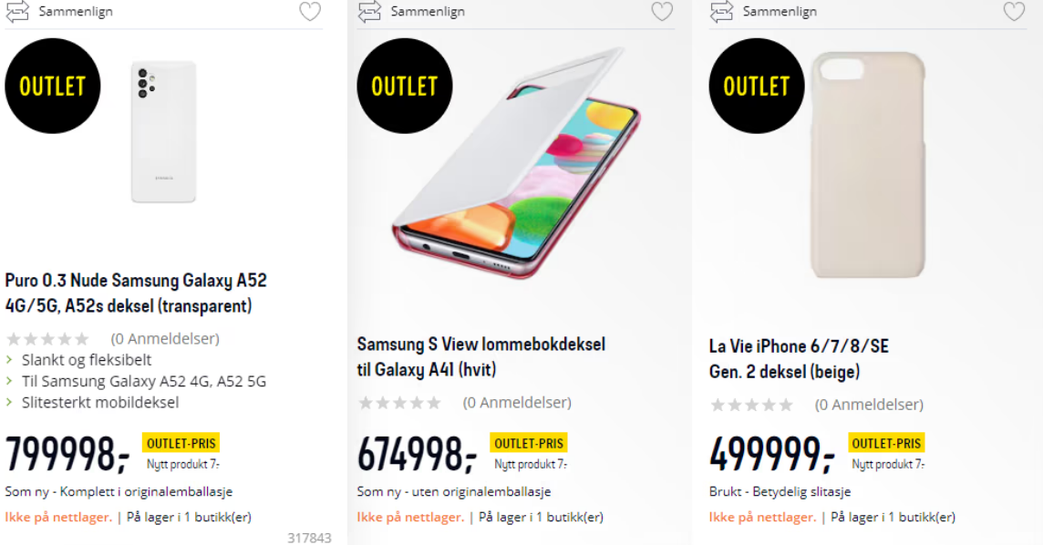 Onsdag morgen dukket det opp et Samsung Galaxy A52-deksel til en svimlende pris på nesten 800.000 kroner i Elkjøps Outlet-avdeling. Og nei, dekselet er ikke laget av edle materialer som gull eller diamanter – det er helt enkelt produsert av silikon.