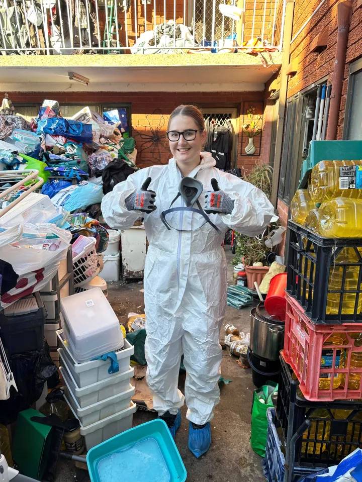 Hun deler også et innblikk i hva jobben innebærer: vernehansker, søppelsekker, masker – og mye tålmodighet. Hun møter alt fra mugg og råte til illeluktende søppel og skitne bad.